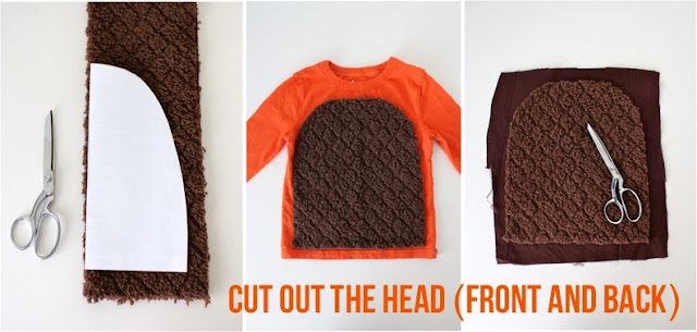 I originally wanted to use crazy fur like Laura did above. But I worried that on a shirt, it might not wear or wash well so I went with a super soft terry-cloth minky from Joann Fabrics....the same type of fabric used for Owen's House Robe the other day:
